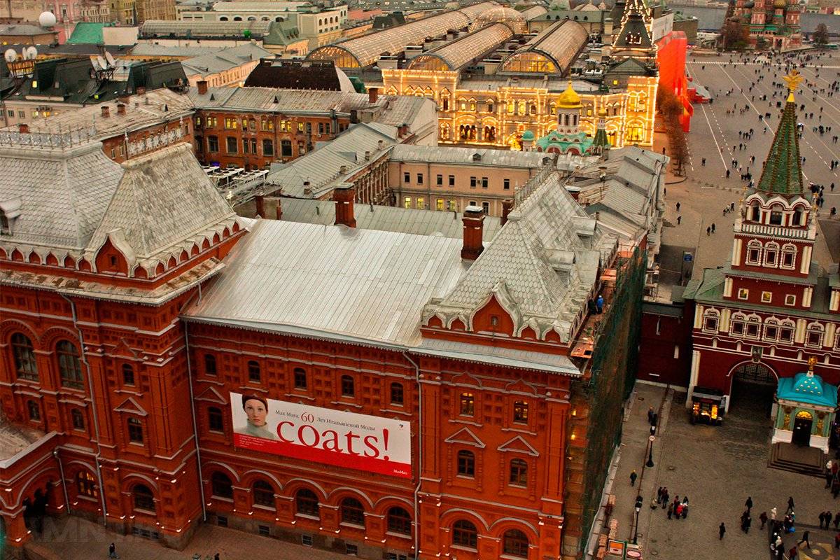 На крышу поднимают уже готовые, созданные на земле картины с загнутыми краями
