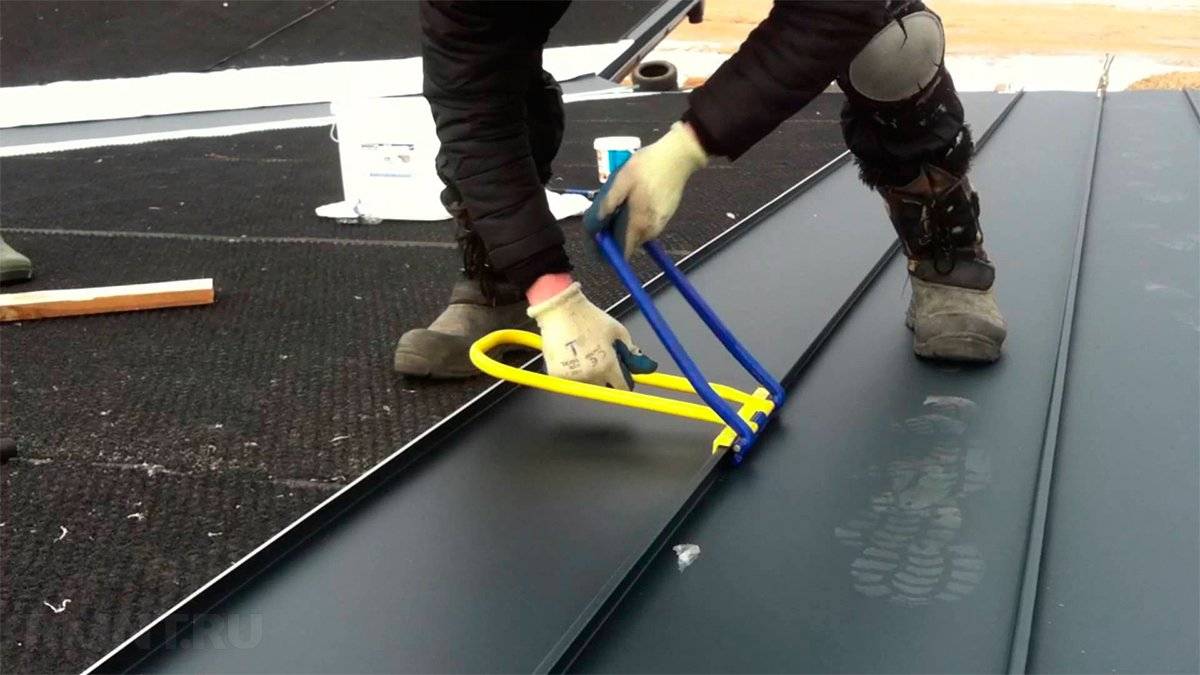 После корректной укладки кровельного материала необходимо проконтролировать герметичное соединение фальцев.