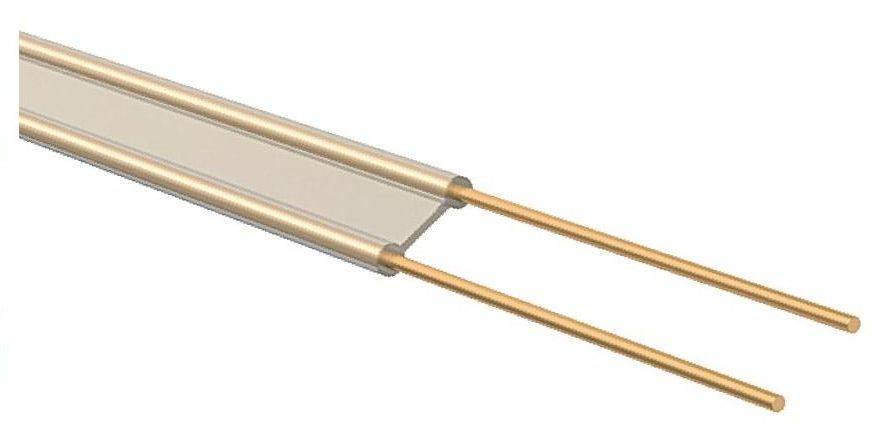 Плоский провод, здесь только медные однопроволочные жилы. Применяется для прокладки различных осветительных систем и для монтажа розеток и выключателей. Из него можно сделать и ответвление провода.