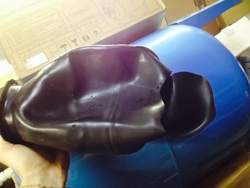 В ходе демонтажа сразу станет ясно, есть ли проблемы с резиновой грушей. Дело в том, что она разделяет бак на два полностью изолированных друг от друга сегмента. В одном из них находится вода, а в другом – воздух. И если при сливе жидкости из емкости, также начинает стравливаться атмосфера, то это значит, что в мембране произошел разрыв.