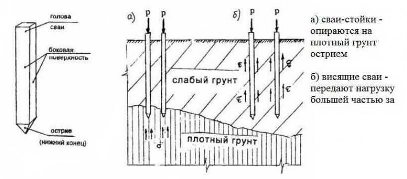 - Упираясь своим основанием в прочные скальные породы, свая передаёт им несущую нагрузку.