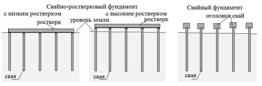 Проектным расчетом, исходя из условий участка и общего веса здания, выбирают, какой вид свайно-ростверкового фундамента целесообразно применить.