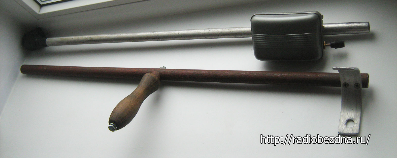 Штанга у меня получилась из двух частей, трубки были подобраны таким образом, что они входят друг в друга очень плотно, благодаря чему не пришлось придумывать специального крепления для этих трубок. Также были изготовлены подлокотник и рукоятка, чтобы было удобно выполнять проводку над землей. Как показала практика, это очень удобно: рука совершенно не устает. В разобранном виде металлоискатель получился очень компактный и умещается буквально в пакет: