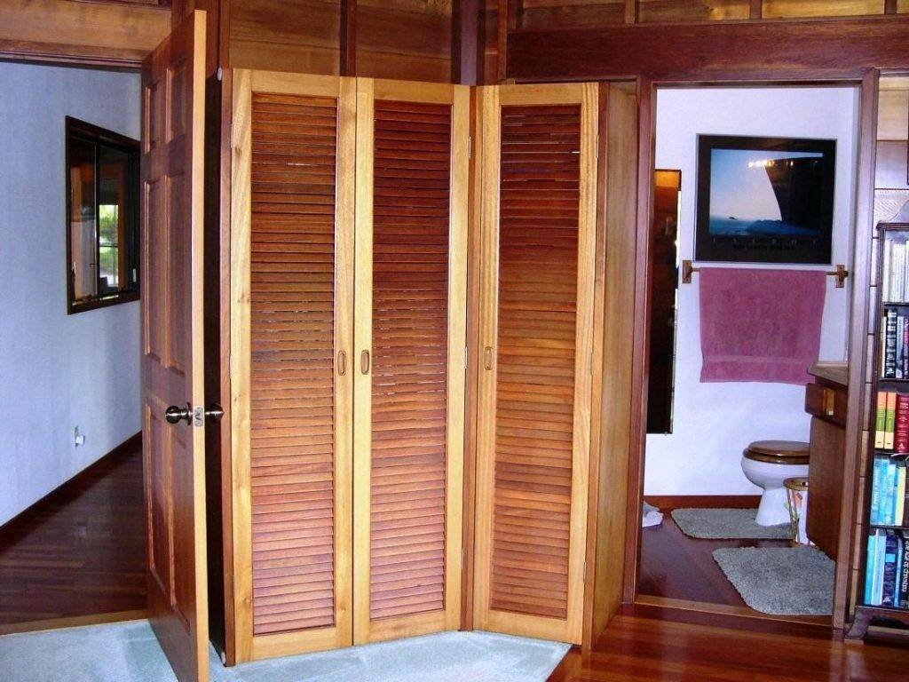 Как бы старательно ни устанавливались межкомнатные двухстворчатые двери, между полотнами образуется щель в несколько миллиметров. С наружной стороны межкомнатных распашных двухстворчатых дверей щель прикрывается декоративными притворными планками. В некоторых случаях одну их створок двухстворчатых дверей по мере необходимости эксплуатации фиксируют дверным шпингалетом (торцевым ригелем).