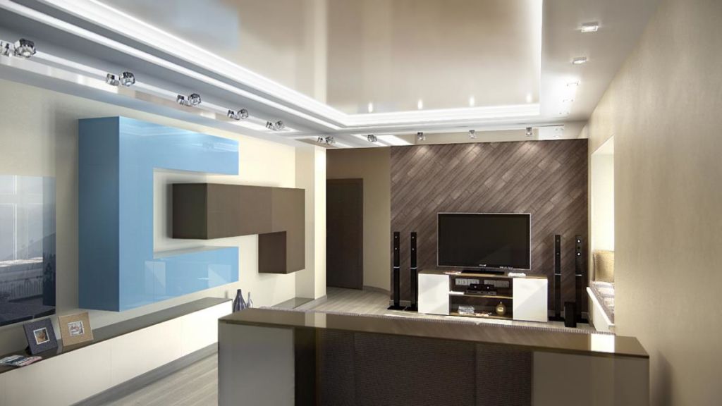 Классическое решение – точечные светильники по периметру или вдоль стен. Если вытягивать их параллельными рядами – это зрительно раздвинет противоположные стены. А зональная установка позволяет отказаться от бра, торшеров и даже настольных ламп.