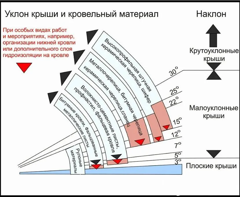 Необходимо учитывать, что каждый тип покрытия имеет свой рекомендованный угол наклона кровли Источник belhouse.by