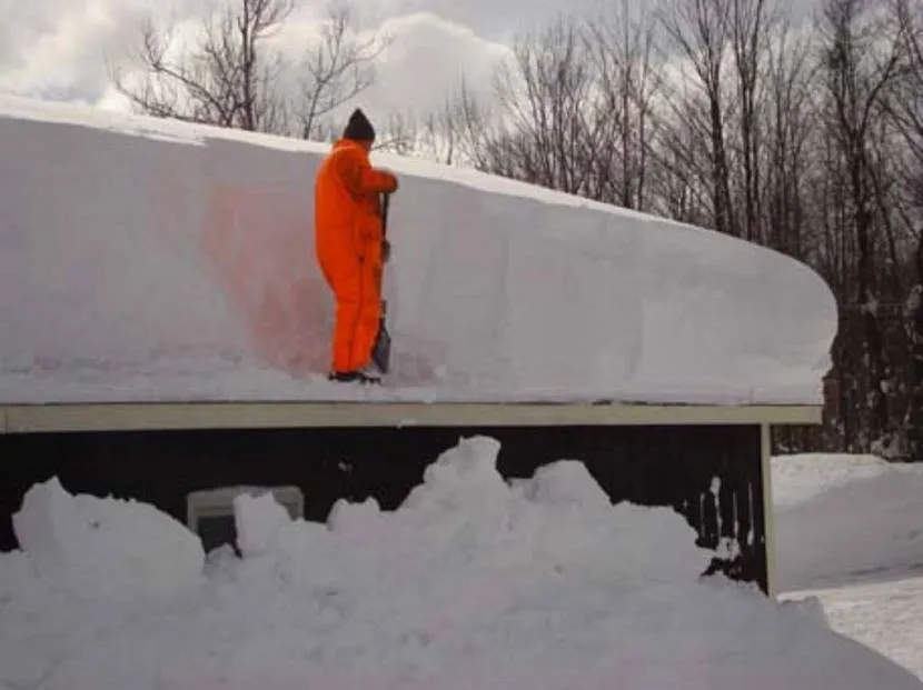 Снег примерзает к покрытию и теряет возможность схода, в результате чего на крыше образуются большие сугробы, которые приходится регулярно счищать.