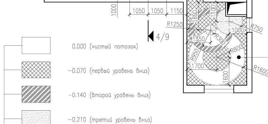 Можно соорудить трехуровневый потолок, его конструкция отличается только числом ступеней на потолке. Но стоит понимать, что если уступов предусмотрено несколько, то следует усилить несущую конструкцию, максимальная нагрузка должна составлять 14 кг на один квадрат площади. Сделать многоуровневый потолок из гипсокартона проще прямолинейным в несколько уровней, чем фигурный.