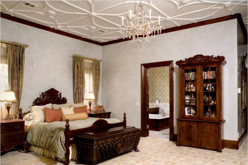 Создавая дизайн интерьера спальни с использованием молдинга не следует употреблять элементы из разных стилей и яркой окраски. Это будет способствовать концентрации внимания на декоре, а на общем впечатлении.