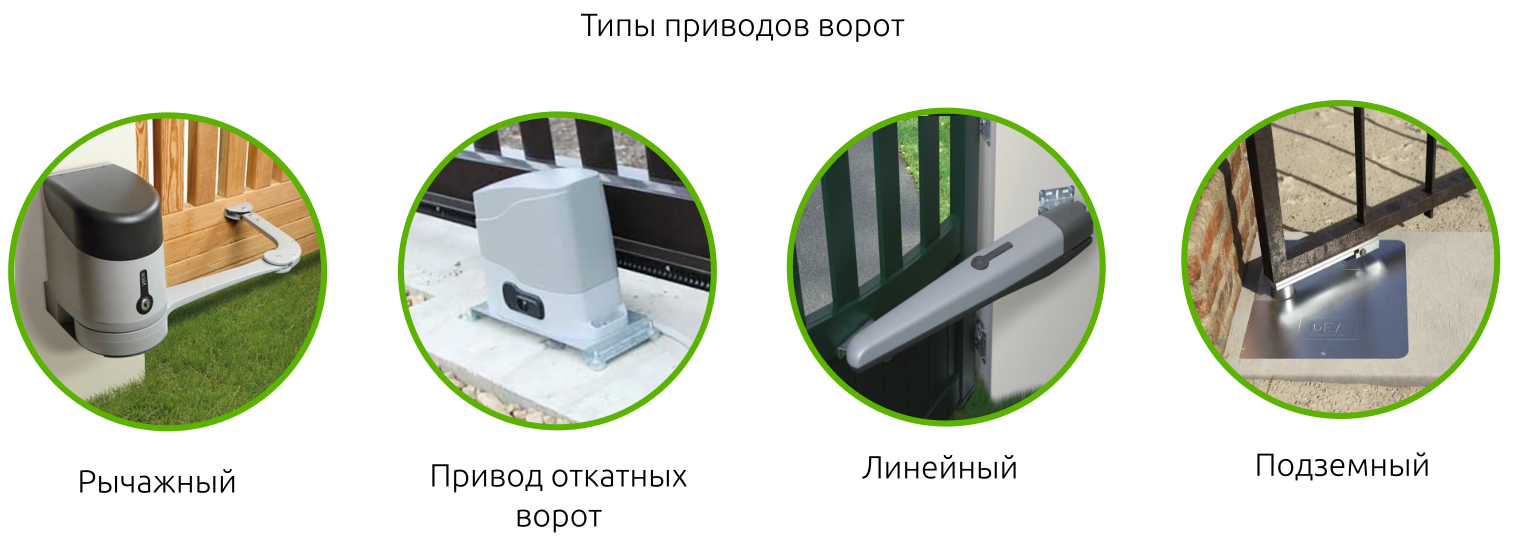 Ворота любого типа можно оборудовать электроприводом и системой автоматики. Для каждого типа ворот применяется свой тип электропривода.