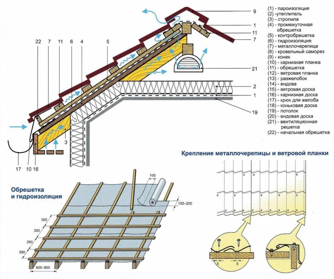 Устройство кровли из металлочерепицы: технология и выбор конструкции