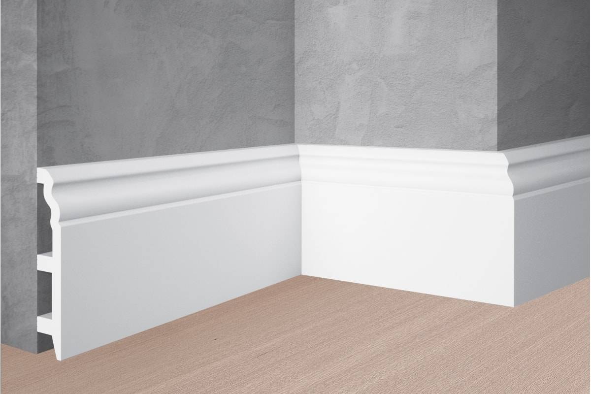 Процесс крепления плинтуса начинается с выбора материала, который подбирается индивидуально в каждой ситуации. С появлением новых технологий, практически не используется бетонный плинтус или изделия из древесины. Хотя деревянный пол, паркет отлично смотрятся в «компании» с деревянной отделкой. Плинтусы с отверстиями для скрытия кабеля, для ковролина, стандартные, пластиковые — далеко не весь перечень декоративного профиля. Существуют следующие виды:
