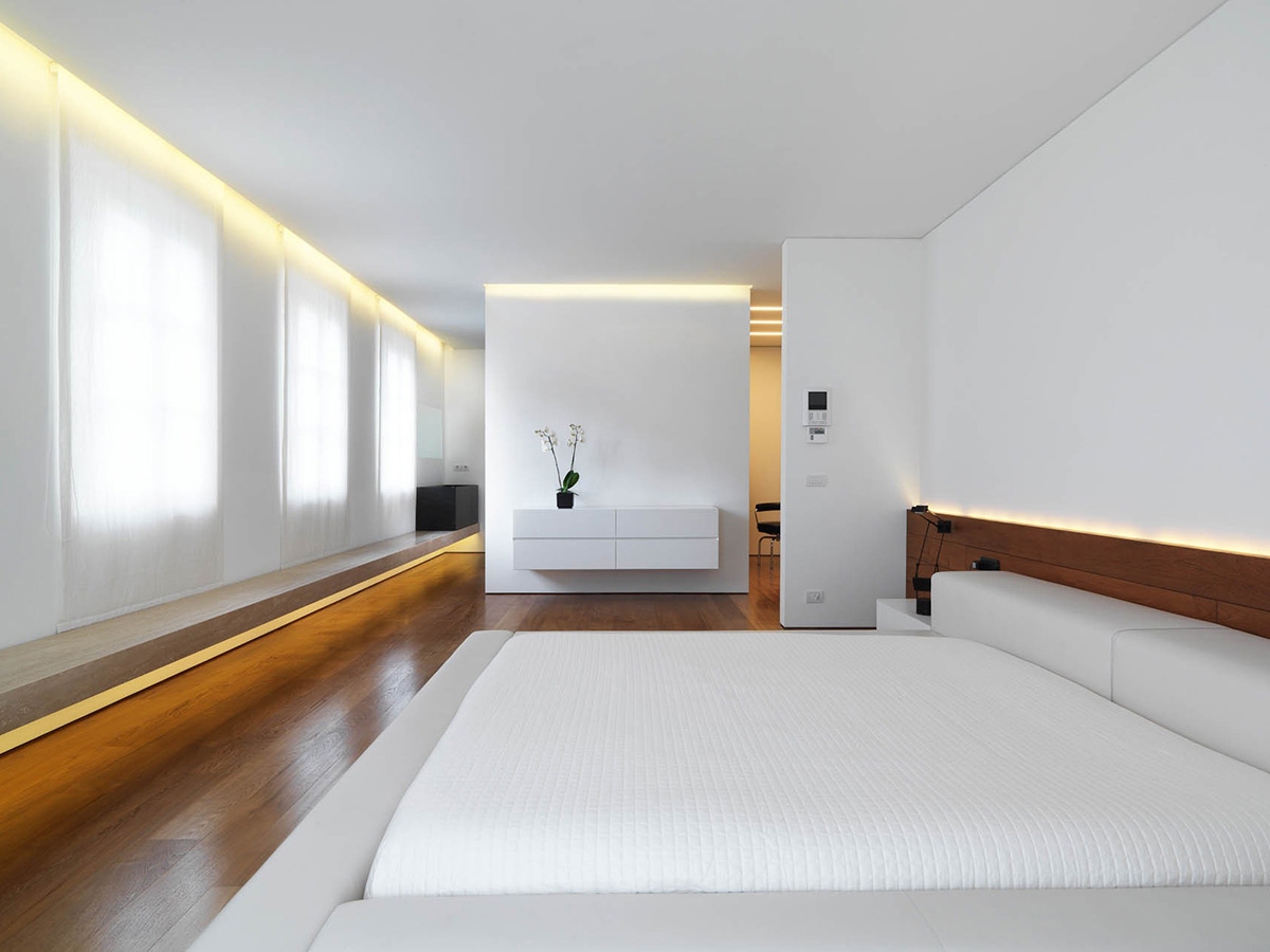 Широкий плинтус зрительно сглаживает углы помещения, а также помогает скрыть многочисленные дефекты поверхности и место стыка потолочной конструкции и стены. Однако такое решение будет уместно лишь в тех ситуациях, когда размеры комнаты позволяют использовать громоздкий плинтус. В противном случае широкое изделие будет визуально уменьшать комнату, делать ее неуютной и низкой. Для компактных помещений идеальным вариантом станут тонкие багеты.
