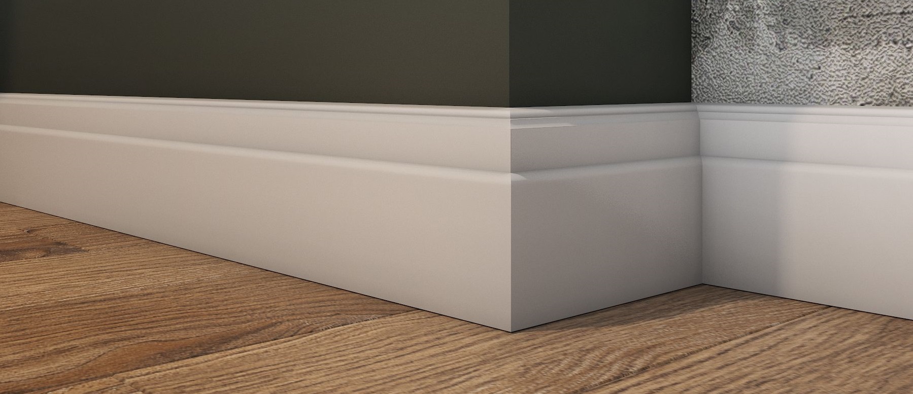 Для любителей природных материалов в качестве альтернативы пенополиуретановым коллекциям выпускаются планки из МДФ. Здесь также имеется выбор относительно формы. В дополнение к тому на лицевой стороне заготовок имеется декоративное покрытие с тем или иным принтом. То есть внешне плинтуса могут быть как окрашенными в сплошной цвет, так «деревянными». По сути МДФ – это экологичный продукт деревообрабатывающей промышленности, что незначительно уступает массиву. Но сравнительно по низкой цене можно смонтировать напольное обрамление из «драгоценных пород».