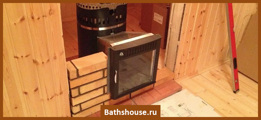 Конструкцию изолируют базальтовой ватой, ближе к полу обустраивают отверстие для топочного канала. Стенку обшивают вагонкой, которую защищают от пара фольгированным материалом. Дополнительно монтируют облицовку печи и защитные стенки из кирпича, других жаропрочных материалов.