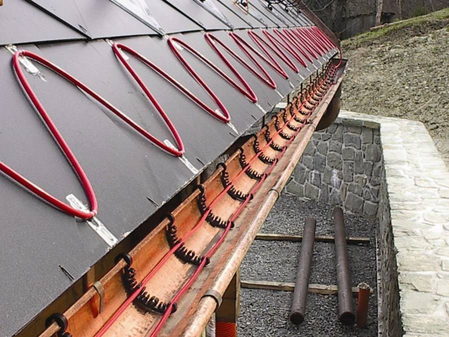 Стекание воды по кровле выступает вариантом естественного отвода. Однако в местах с более выраженным рельефом, на внутренних углах, сложных карнизах этого недостаточно. Вода и снег здесь накапливаются, что чревато протечкой или повреждением кровельного материала.