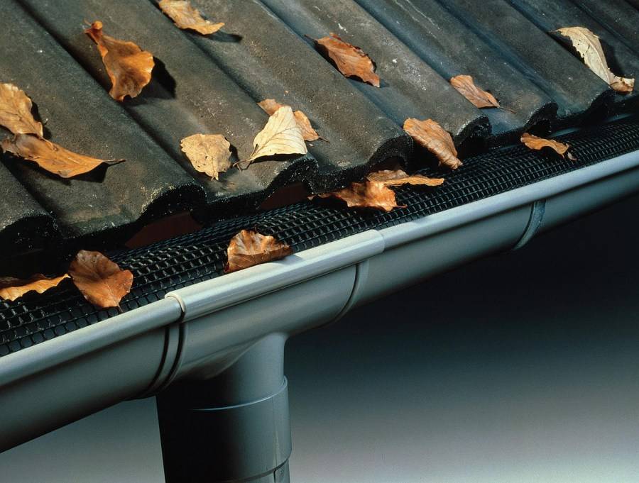 - установить правильный угол желоба (по направлению водосточной трубы) 0.5-2%, именно такой наклон позволяет воде самостоятельно очищаться;
