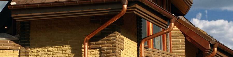 Медные водостоки относятся к категории премиум класса. По всем техническим и эксплуатационным характеристикам ни превосходят и стальные, и пластиковые. У них превосходный внешний вид, но очень высокая цена. Именно поэтому медные водосточные система не так популярны, как две остальные.