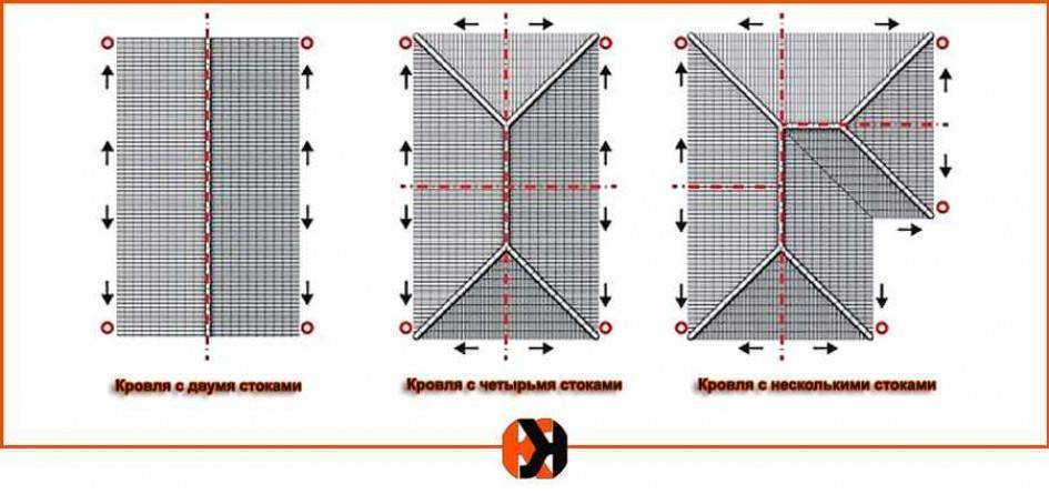 - Для четырехскатных крыш — с каждой стороны (то есть будет 4 желоба).
