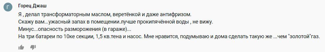 У кого есть возможность, заливают масло. Не веретенку или отработку, а трансформаторное. С ним батарея никогда не замерзнет.