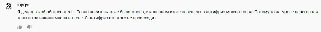 А еще такое масло отличный изолятор. Не нужно будет бояться утечек тока при разрушении оболочки нагревательного элемента.