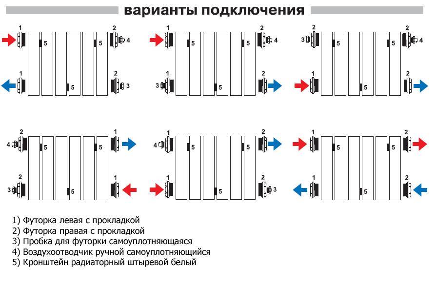 Фурнитуру для радиаторов подбирают исходя из способа подключения