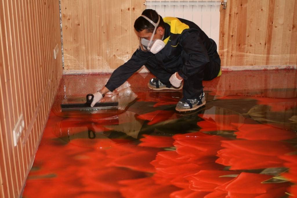 Описание процесса изготовления три дэ полов есть, но не совсем понятно, какие материалы и инструменты нужны. Исходим из того, что пол уже подготовили — выровняли и высушили. Поэтому про выравнивающие составы говорить не будем. Это слишком объемная тема с кучей нюансов. Собственно чтобы сделать наливной пол 3d нужно четыре состава: