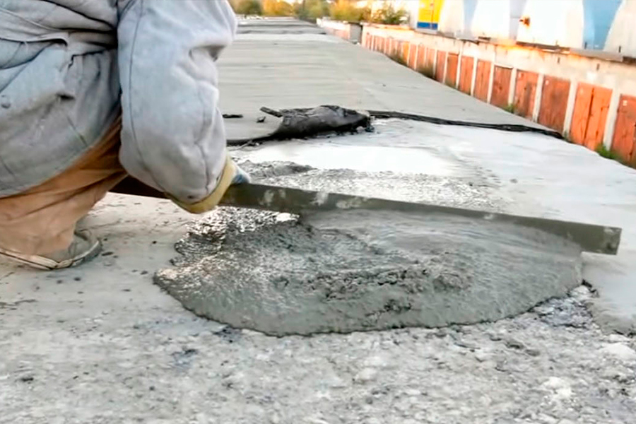 осмотреть плиту, проверить, нет ли на ее поверхности выбоин или других дефектов. Если они найдены, необходимо заделать их бетонным раствором. В самых сложных случаях заливают сплошной слой бетонной стяжки;