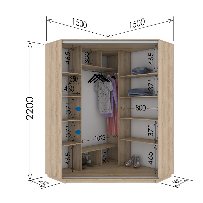 Угловые шкафы были придуманы для экономии пространства. Их удобнее размещать в комнате, размеры могут быть абсолютно разные.
