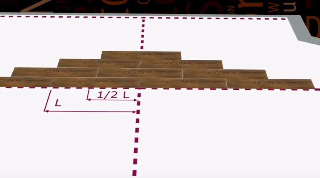 Укладка любых модульных покрытий нуждается в качественной разметке пола. Первым делом на полу чертятся осевые линии, на пересечении которых находится центр помещения. Для этого на одной стене с помощью рулетки отмечается середина и от нее проводится направляющая до другой стены. Затем находится центр на этой оси и под углом 90° проводится линия, перпендикулярная двум другим противоположным стенам. Таким образом помещение оказывается разделено на 4 части. Фиксация виниловых модулей будет начинаться от центральной осевой линии, согласно выбранной схеме укладки. В том случае, если рисунок предусматривает диагональный способ раскладки, между осевыми перпендикулярными линиями проводятся биссектрисы, которые также должны пересекаться друг с другом под углом 90°.
