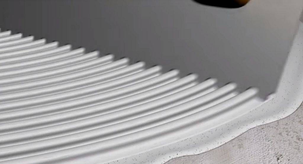 - Технология, по которой производится укладка, позволяет создать покрытие без швов, а потому не потребуется использовать стыки или пороги.
