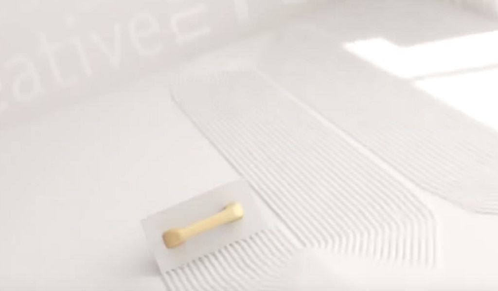 Для нанесения полотна можно использовать самый обычный зубчатый шпатель, так как он позволяет покрыть изнаночную сторону плитки равномерно, что существенно скажется на ровности приклеивания и готовом покрытии. Чтобы прокатать стыки между плитами, стоит использовать специальный валик или просто сильно прижать каждый элемент к полу. Укладку плит проводят исключительно с центральной части помещения, по заранее подготовленной разметке.