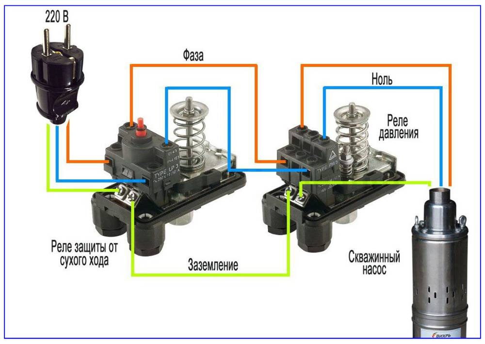 Схема работы автоматики для насосов водоснабжения и скважины по эффективности не уступает центральным системам.
