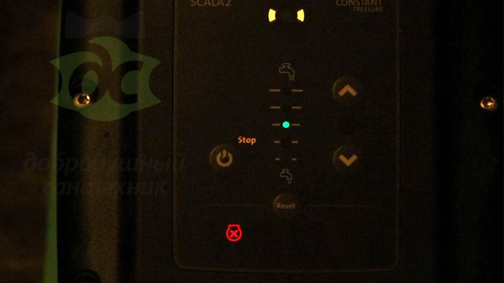 Более того, насосная установка SCALA2 имеет в своем составе фирменный индикатор работы со световыми указателями возникающих ошибок. Причем последние расположены прямо на панели управления. В результате определить причину сбоев в работе насоса элементарно просто.