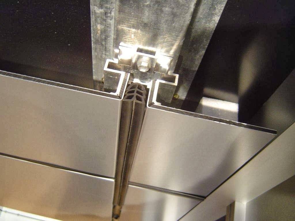 - в выемки опорных кронштейнов вставляются профили и закрепляются при помощи заклепок. Необходимо предусмотреть температурное расширение материала – оставить в местах крепления зазоры;