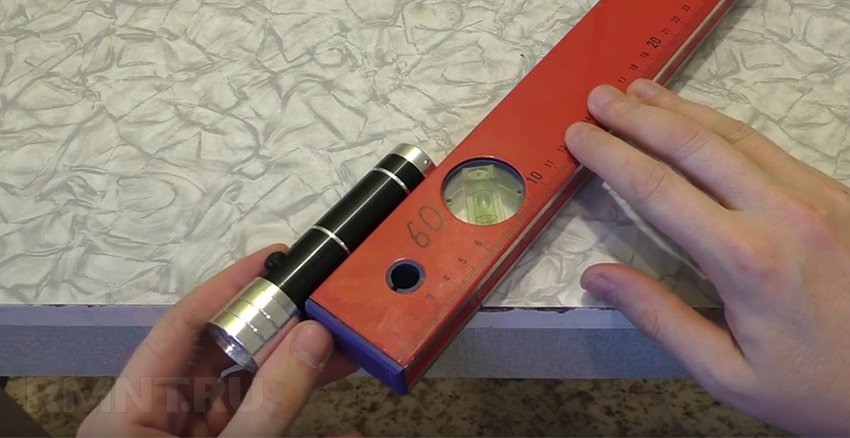 А если вы используете второй вариант самодельного уровня, то всегда ждите до тех пор, пока пенопласт с указкой не зафиксируется в одном положении.