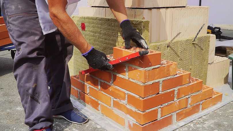 За раз выкладывают 5-6 рядов материала. Для разглаживания раствора в швах требуется мастерок особой формы. Если смесь попала на лицевую сторону облицовки, убрать ее нужно сразу же. После завершения работы готовую конструкцию на 3-4 часа накрывают полиэтиленовой пленкой, чтобы защитить конструкцию от возможных осадков.