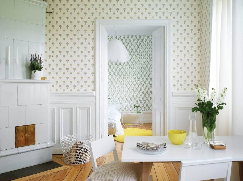 Орнамент на обоях или их фактура должны быть слегка «вытертыми», будто выгоревшими от постоянных солнечных лучей. Слишком яркие, сочные оттенки будут выглядеть чужеродными.