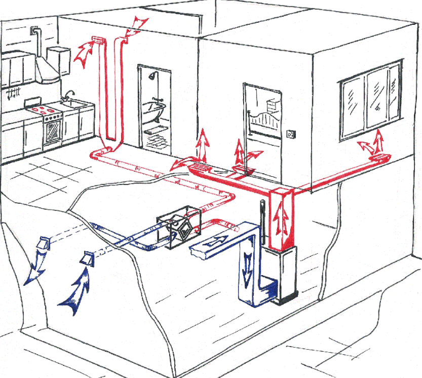 Для эстетики воздуховоды прячут в межпотолочное или напольное пространство.