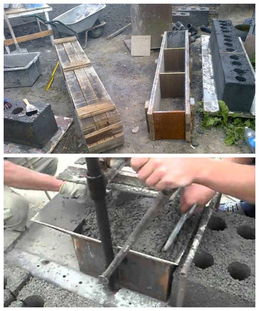 Короб не имеет дна и нуждается в установке на ровном основании (металлической пластине). На его боковые (короткие) стороны для устойчивости можно дополнительно наварить 2 отрезка трубы, длиной больше, чем ширина ящика. Это позволит сооружению не опрокидываться при вибрации. На верхний периметр наварены бортики, которые позволяют аккуратно заполнить матрицу.