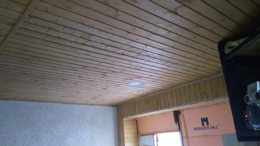Потолок гаража отделанный вагонкойИсточник drive2.ru