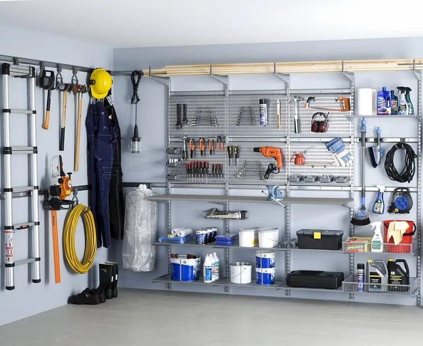 • Идеальным вариантом является установка перфорированных панелей, где щиты снабжены крючками и креплениями инструментария.