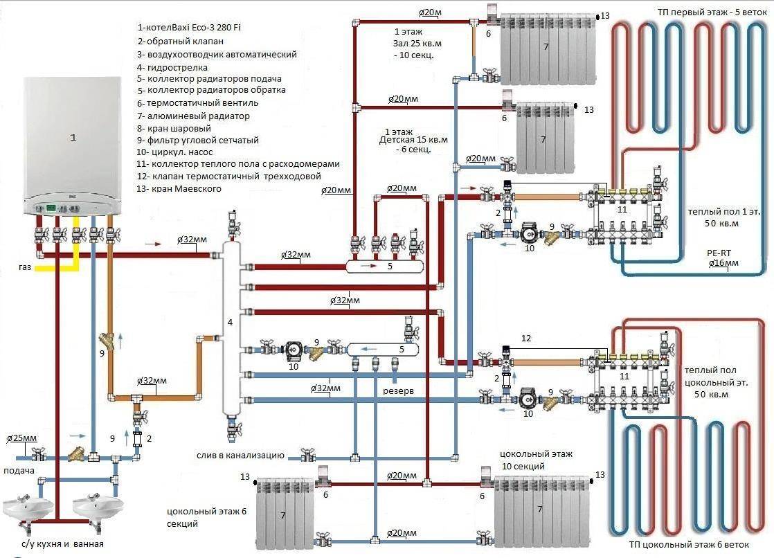 Схема обвязки котла Baxi Eco для двухэтажного дома