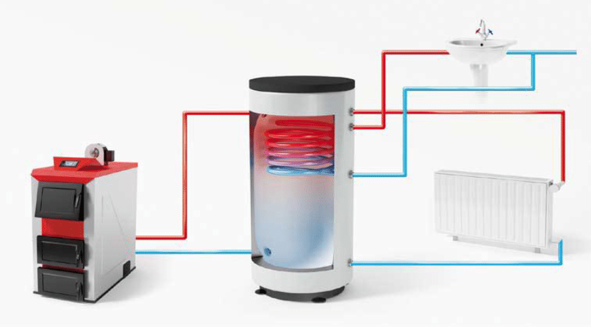 Так называется металлический или полимерный бак с теплоизолированными стенками. Как и следует из названия, он служит для накопления тепловой энергии.
