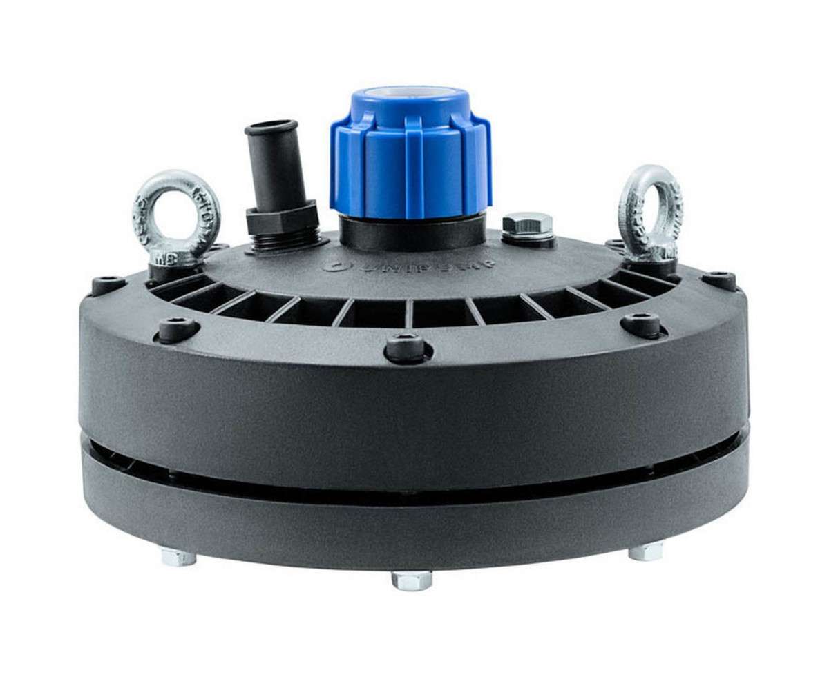 В крышке оголовка для скважины располагаются: штуцер для фиксации трубопровода, шарнир с направляющим патрубком для крепления силового кабеля, зажим для фиксации низковольтного провода к устройству сухого хода, рым-болты для подъема узла с помощью тали, рым-болт для крепления троса погружного насоса.