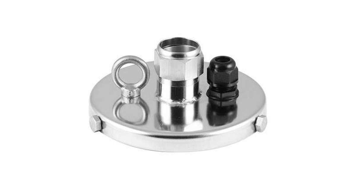 Крышку делаем таким же образом из того же материала, что и фланец. Нужно предусмотреть отверстие, куда будем вводить трубы и кабель. Отверстия должны быть с переходниками, а также болтами для прижима. Диаметр отверстия должен быть таким, чтобы соответствовал штуцеру, который приваривают к крышке. На крышке должны бить 3 рым-болта.