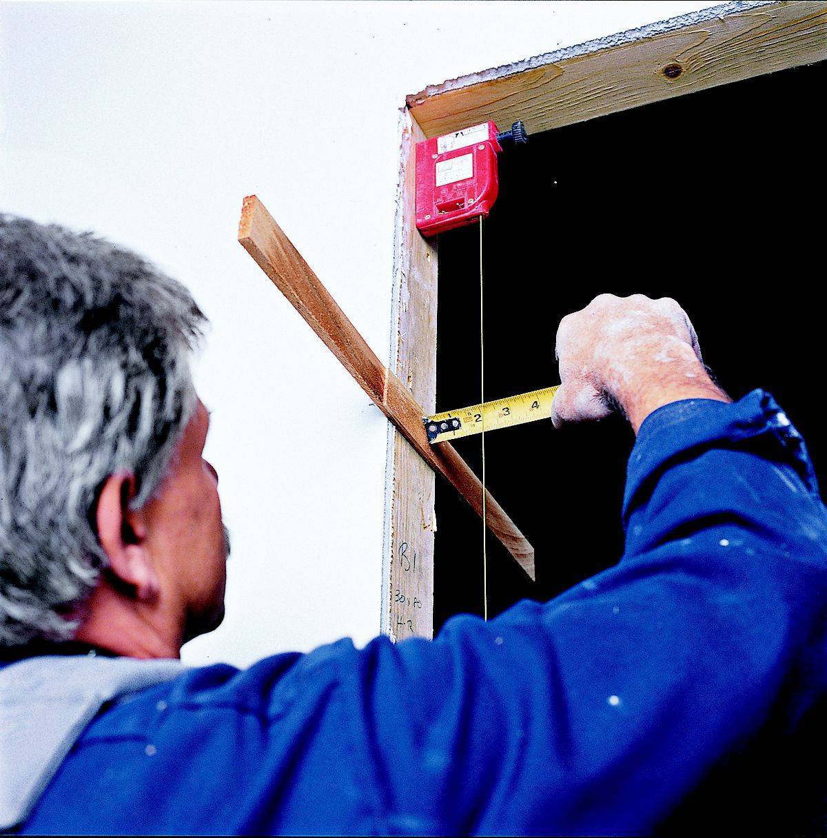 Нити в центре должны соприкасаться. Если этого не произошло, значит, следует нижнюю часть проема переместить в необходимом направлении. Для этого внизу проема кладется деревянный брусок и слегка простукивается небольшой кувалдой. Процедура продолжается, пока одна нитка не соприкоснется с другой.