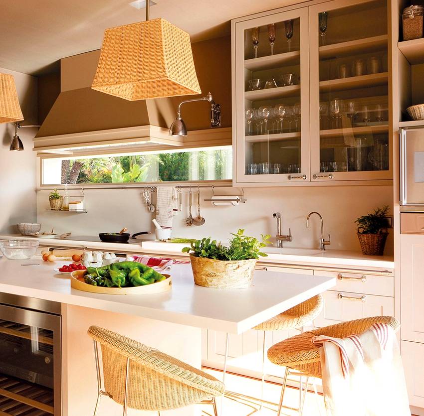 Существует несколько требований к правильному освещению на кухне. Необходимо, чтобы свет в помещении равномерно распределялся по всей площади, исключая возникновение затемненных участков. Тень не должна попадать на рабочую и обеденную зоны. Лампы располагаются таким образом, чтобы они не светили в глаза и не создавали бликов.