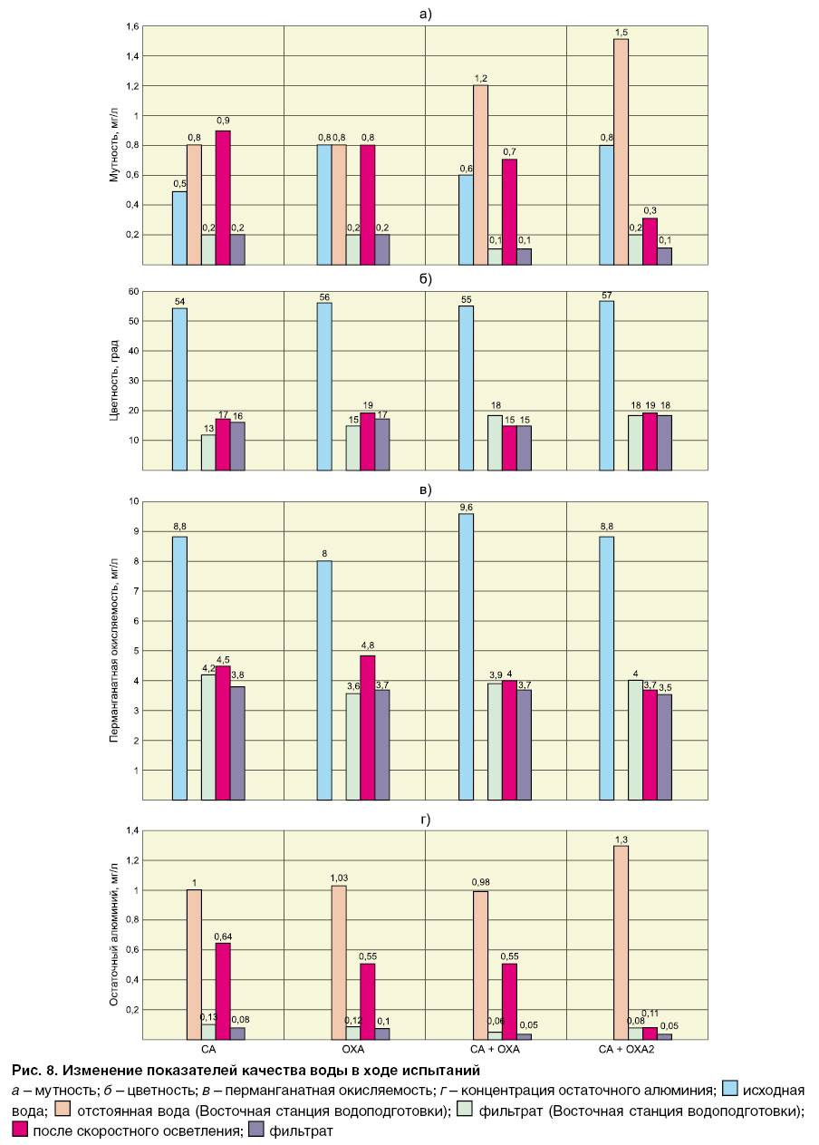 остаточного алюминия в отстоянной воде снижалось до 0,1 мг/л, что на порядок ниже по сравнению с водой, обработанной на Восточной станции водоподготовки.