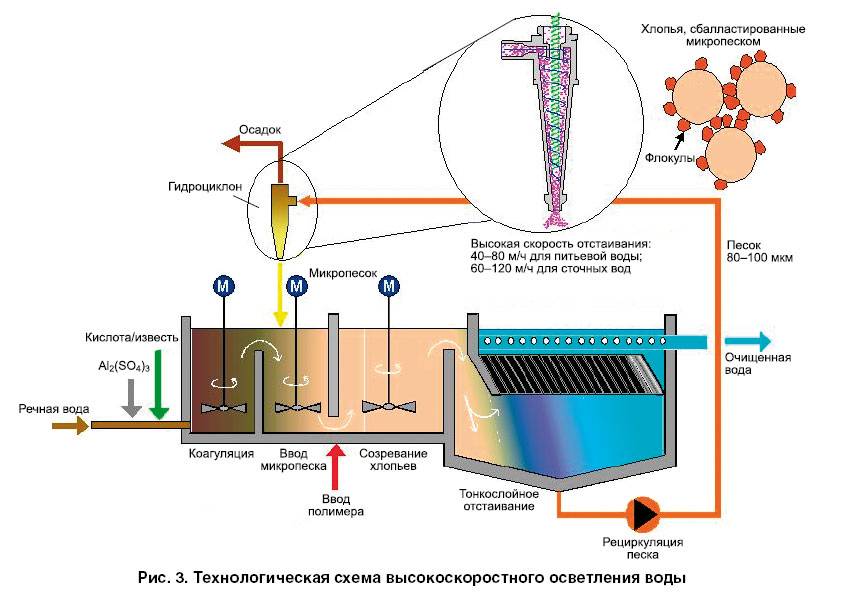 Процесс осветления может изменяться в зависимости от количества взвешенных в воде веществ.